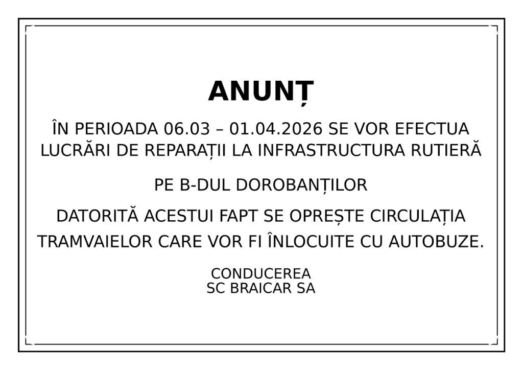 Compania de Utilități Publice Dunărea Brăila S.A. a anunțat că marți, 10.03.2026, între orele 00:00 și 22:00, va întrerupe furnizarea apei potabile pentru executarea unor lucrări de reabilitare în cadrul…