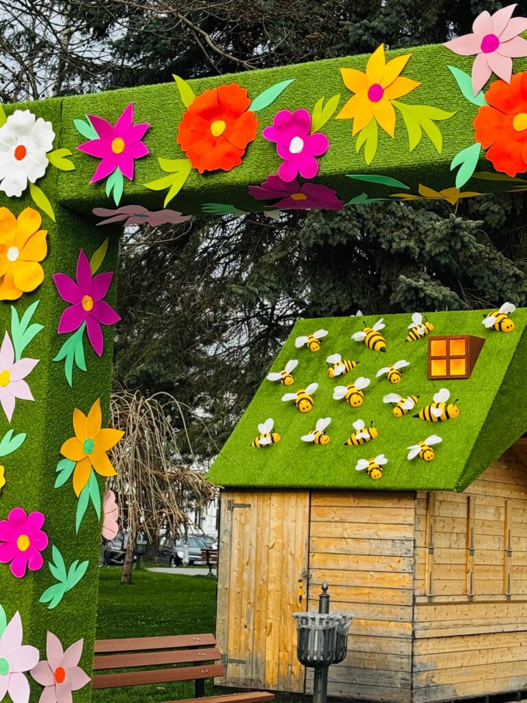 • Decoruri tematice: Căsuțe ornate cu fluturi, flori și gărgărițe, alături de simboluri tradiționale precum puișori și iepurași.