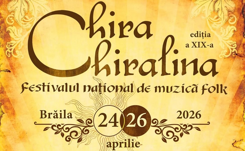 Consiliul Județean Brăila și Centrul Județean pentru Conservarea și Promovarea Culturii Tradiționale Brăila, cu sprijinul Primăriei Municipiului Brăila, organizează în perioada 24–26 aprilie 2026 cea de-a XIX-a ediție a Festivalului Național de Folk „Chira Chiralina”, un eveniment de referință pentru muzica folk românească.