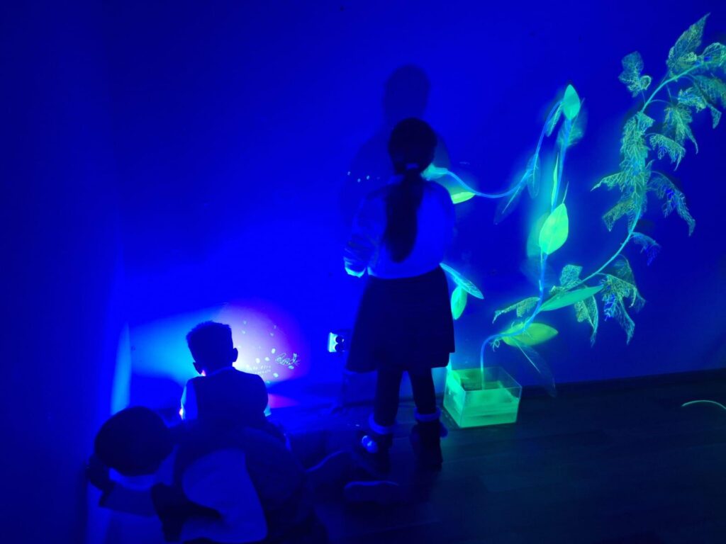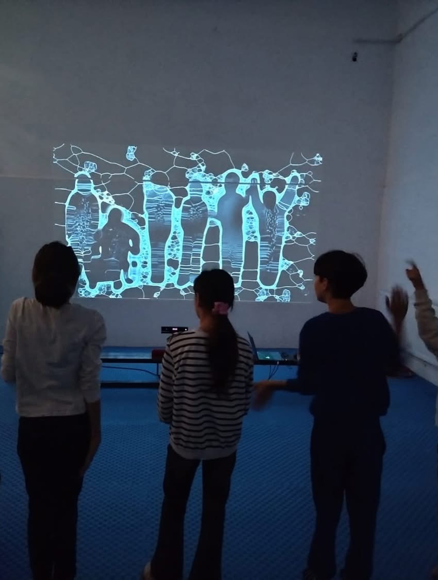 Următoarea experiență, proiecțiile interactive „Hidrosfera în mișcare”, realizate de Cristina Bodnărescu, George Urse și Aural Eye, au transformat gesturile copiilor în valuri, sunete și forme de lumină pe un ecran mare. Mișcarea corpului genera un dans viu cu apa, o joacă în care totul se transforma și se contopea cu rîul digital.